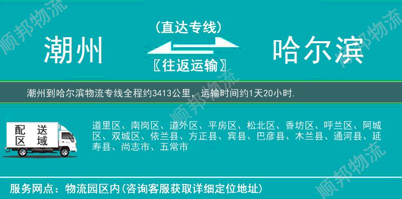 顺邦物流作为专业的潮州物流公司|潮州货运公司|潮州电商物流运输综合物流服务商,为了保证潮州到哈尔滨物流运输货物运输更加安全、及时、*的运营,进一步提高顺邦物流潮州至哈尔滨物流品_牌竞争力,公司在哈尔滨专门设立了办事机构,并备有专业的物流工作人员与您及时沟通,为您提供从潮州到哈尔滨的物流运输相关延伸服务,极大的保障了货物的准时到达和及时派送,缩短了货物在途时间,提高了物流运输效率。