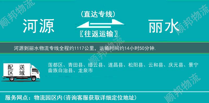 顺邦物流全力打造河源同类型运载效率快速、质量高、价格优、货损货缺理赔及时、后续服务完善的综合物流体验,诚挚助力客户新发展,在提供*运输服务的同时我司还考虑到客户有从周边城市发往丽水的货物。