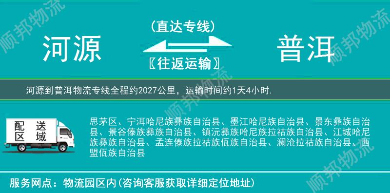 ★ 声明:本文"河源到普洱物流专线_全境到达「收费标准」"由顺邦物流原创发布,转载请保留本文链接:http://www.lyhawl.com/heyuan/puer-wuliu.html