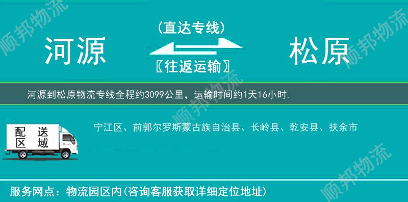 同时,顺邦物流为了方便广大客户从河源到松原的不同运输时效和物流成本要求,顺邦物流特推出河源到松原物流公司相关业务,以此来降低从河源到松原运输的物流成本,提高河源到松原的物流效率,以便为新老客户提供更加完善的从河源到松原的一站式*物流服务!