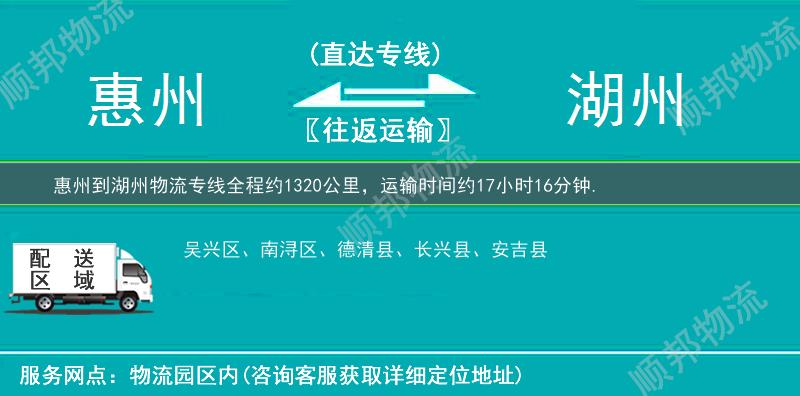 ★ 声明:本文"惠州到湖州物流专线_来电咨询「直通专线」"由顺邦物流原创发布,转载请保留本文链接:http://www.lyhawl.com/huizhou/huzhou-wuliu.html
