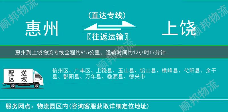 ★ 本站所列惠州到上饶物流专线费用与时效仅供参考,如需详细了解收费标准请电话咨询。