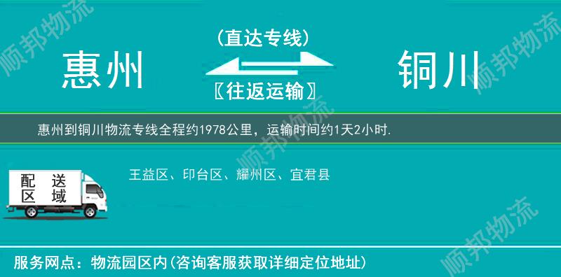 ★ 本站所列惠州到铜川物流专线费用与时效仅供参考,如需详细了解收费标准请电话咨询。