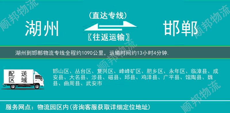 顺邦物流湖州到邯郸物流业务部秉承“用心呵护,值得托付”的服务理念,凭借湖州到邯郸物流专业平台,始终致力于为客户提供满意的湖州到邯郸的专线物流运输服务。我们一直多年的在为各行各业提供我们的物流服务,也得到了很多客户的认可和口碑相传,如果您有意向选择我们,我们非常乐意为您解决物流相关问题。当然,还有很多好的物流公司也提供从湖州到邯郸的批发商物流运输服务,您也可以多多咨询,找到合适您的物流服务商。