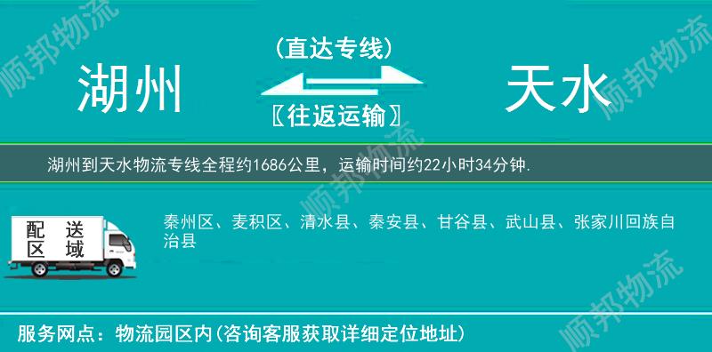 ★ 声明:本文"湖州到天水物流专线_直达特快专线「要几天到」"由顺邦物流原创发布,转载请保留本文链接:http://www.lyhawl.com/huzhou/tianshui-wuliu.html