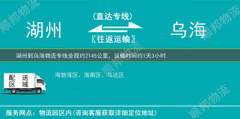 ★ 声明:本文"湖州到乌海物流专线_全程定位「合同承运」"由顺邦物流原创发布,转载请保留本文链接:http://www.lyhawl.com/huzhou/wuhai-wuliu.html