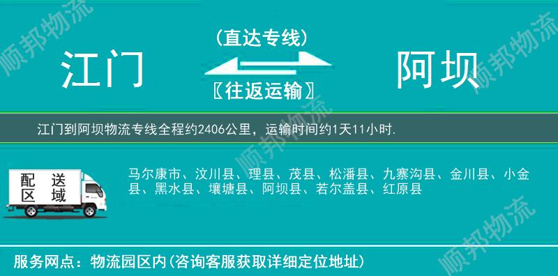 顺邦物流全力打造江门同类型运载效率快速、质量高、价格优、货损货缺理赔及时、后续服务完善的综合物流体验,诚挚助力客户新发展,在提供*运输服务的同时我司还考虑到客户有从周边城市发往阿坝的货物。