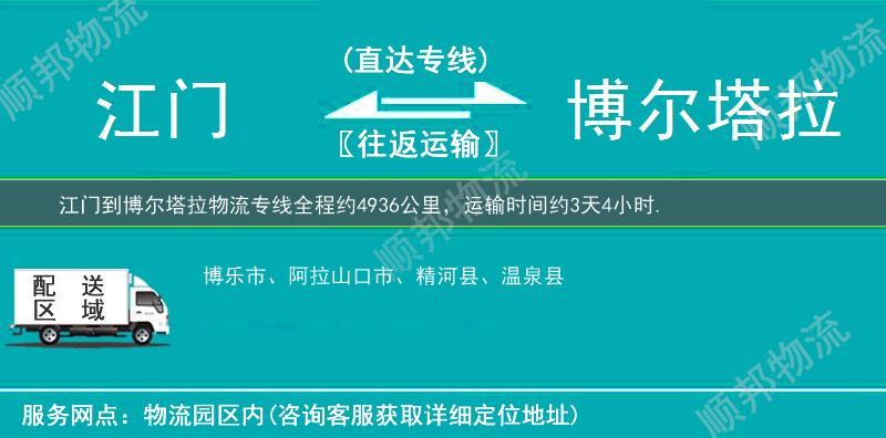 欢迎来电咨询江门到博尔塔拉物流专线相关信息,天天发货,全程3-7天可将您的货物送至博尔塔拉全市:博乐市、温泉县、精河县、阿拉山口市、。