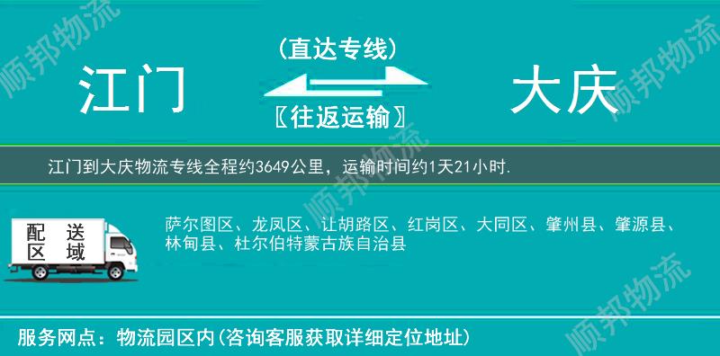 ★ 本站所列江门到大庆物流专线费用与时效仅供参考,如需详细了解收费标准请电话咨询。