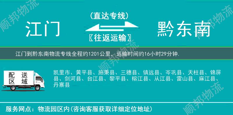 ★ 声明:本文"江门到黔东南物流专线_全境配送「费用多少」"由顺邦物流原创发布,转载请保留本文链接:http://www.lyhawl.com/jiangmen/qiandongnan-wuliu.html