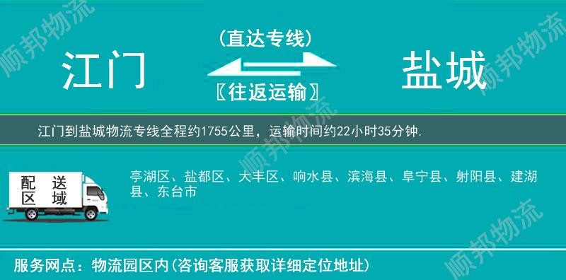 ★ 声明:本文"江门到盐城物流专线_要多少钱「一站直达」"由顺邦物流原创发布,转载请保留本文链接:http://www.lyhawl.com/jiangmen/yancheng-wuliu.html