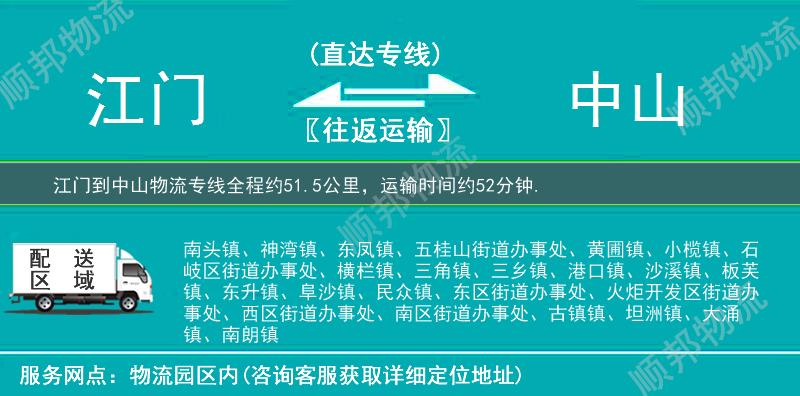 江门到中山物流公司为工厂、贸易商、批发商等货主提供整车、零担、大件运输、普快特快、搬家搬厂、回程车调用等全方位的整车物流,零担运输,门到门运输,点到点配送,送货到指定地点。您可以放心地把货托付给顺邦物流!