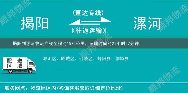 欢迎来电咨询揭阳到漯河物流专线相关信息,天天发货,全程3-7天可将您的货物送至漯河全市:舞阳县、召陵区、源汇区、郾城区、临颍县、。
