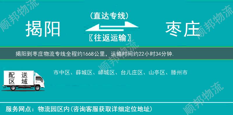 揭阳到枣庄物流专线是顺邦物流主营揭阳到枣庄公路专线系列之一,为客户提供 揭阳到枣庄物流专线服务,公路汽车运输服务,为客户提供优势的 揭阳到枣庄货运专线运输资源,揭阳到枣庄物流为客户提供舒适省心放心的揭阳到枣庄物流公司服务。