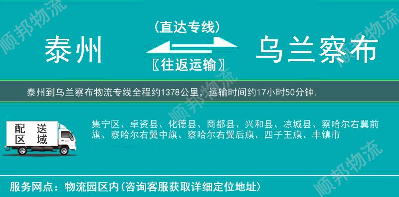 泰州到乌兰察布物流专线_运费多少「托运省心」