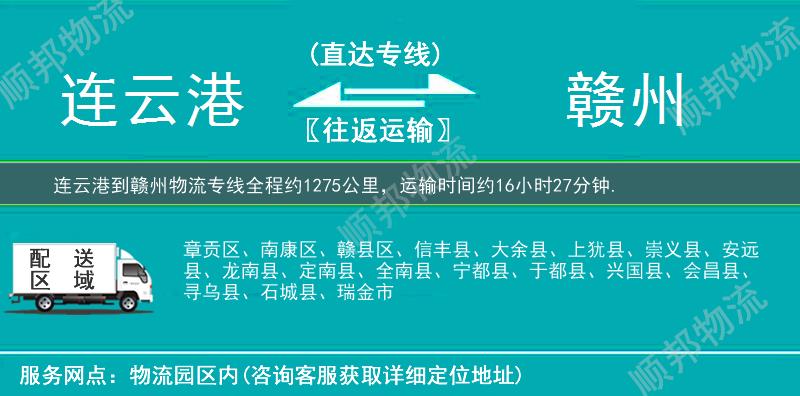 顺邦物流秉承"用心呵护,值得托付"的服务理念,凭借连云港到赣州物流的优_质平台,始终致力于为客户提供优_质*的连云港到赣州物流专线-连云港至目的城市}物流公司运输服务。