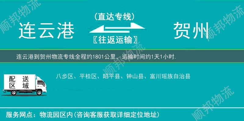 ★ 声明:本文"连云港到贺州物流专线_服务周到「需要几天」"由顺邦物流原创发布,转载请保留本文链接:http://www.lyhawl.com/lianyungang/hezhou-wuliu.html