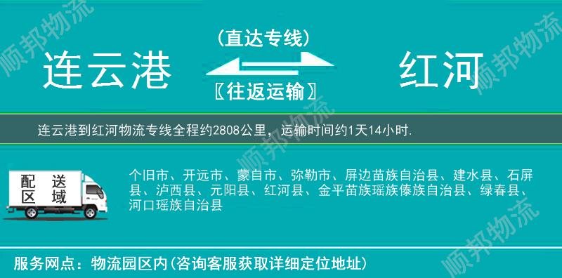 ★ 声明:本文"连云港到红河物流专线_多久时间「直达不中转」"由顺邦物流原创发布,转载请保留本文链接:http://www.lyhawl.com/lianyungang/honghe-wuliu.html