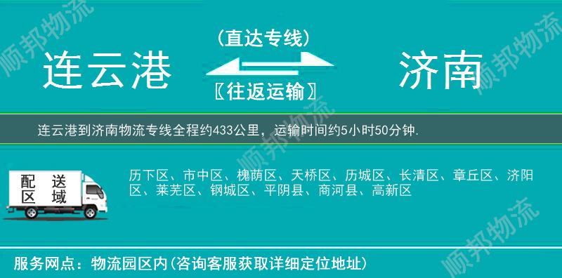 连云港到济南物流专线是顺邦物流从连云港发往至济南的物流货运专线,天天发车,二到三天即可抵达,济南可送货的范围包括:历下区、莱芜区、长清区、钢城区、市中区、天桥区、槐荫区、高新区、济阳区、章丘区、平阴县、历城区、商河县、。