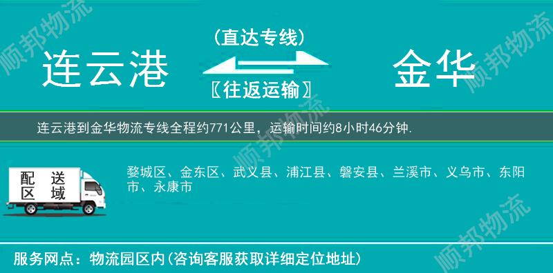 ★ 声明:本文"连云港到金华物流专线_服务周到「运价实惠」"由顺邦物流原创发布,转载请保留本文链接:http://www.lyhawl.com/lianyungang/jinhua-wuliu.html