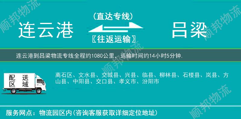 连云港到吕梁物流公司为工厂、贸易商、批发商等货主提供整车、零担、大件运输、普快特快、搬家搬厂、回程车调用等全方位的整车物流,零担运输,门到门运输,点到点配送,送货到指定地点。您可以放心地把货托付给顺邦物流!