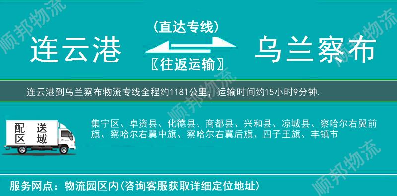 欢迎来电咨询连云港到乌兰察布物流专线相关信息,天天发货,全程3-7天可将您的货物送至乌兰察布全市:化德县、凉城县、察哈尔右翼中旗、兴和县、丰镇市、卓资县、察哈尔右翼后旗、四子王旗、集宁区、察哈尔右翼前旗、商都县、。