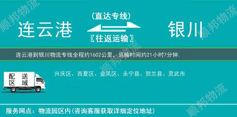 ★ 声明:本文"连云港到银川物流专线_需要几天「全境派送」"由顺邦物流原创发布,转载请保留本文链接:http://www.lyhawl.com/lianyungang/yinchuan-wuliu.html