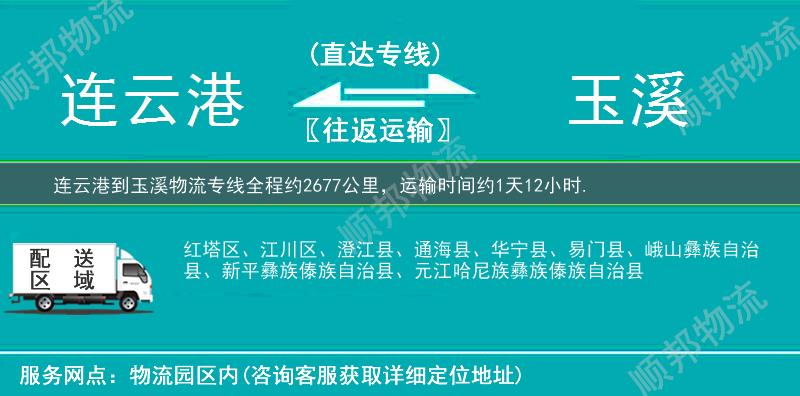 连云港到玉溪物流专线全程约2677公里,专线运输耗时约1天12小时。连云港到玉溪物流专线是顺邦物流推出的从连云港到玉溪的物流专线直达运输,提供连云港到玉溪货运公司电话查询价格和费用,快速安全将货物送达,做用户放心的货运物流服务商。