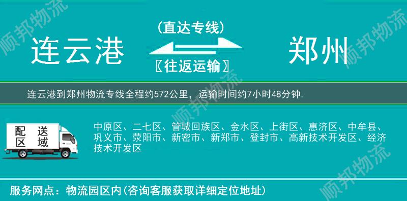 连云港到郑州物流专线全程约572公里,专线运输耗时约7小时48分钟。连云港到郑州物流专线是顺邦物流的主营货运专线,专业连云港至郑州物流公司,提供上门收货和派送到门服务,高品质从连云港发货到郑州,连云港物流到郑州,就选顺邦物流。