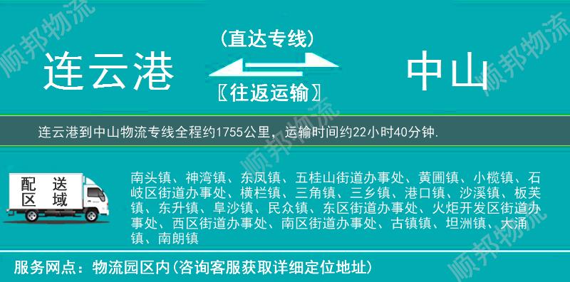 ★ 声明:本文"连云港到中山物流专线_价格实惠「需要几天」"由顺邦物流原创发布,转载请保留本文链接:http://www.lyhawl.com/lianyungang/zhongshan-wuliu.html