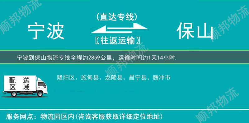 1、我司宁波到保山的物流运输方式是点到点运输,货物抵达我司保山站点后会有专人打电话通知您提货;