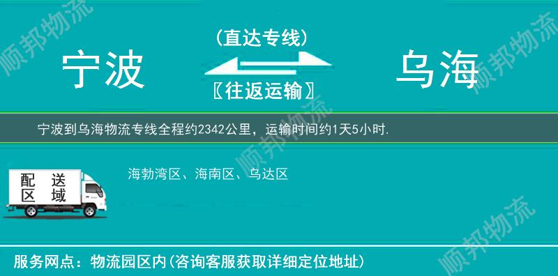 欢迎来电咨询宁波到乌海物流专线相关信息,天天发货,全程3-7天可将您的货物送至乌海全市:海南区、乌达区、海勃湾区、。