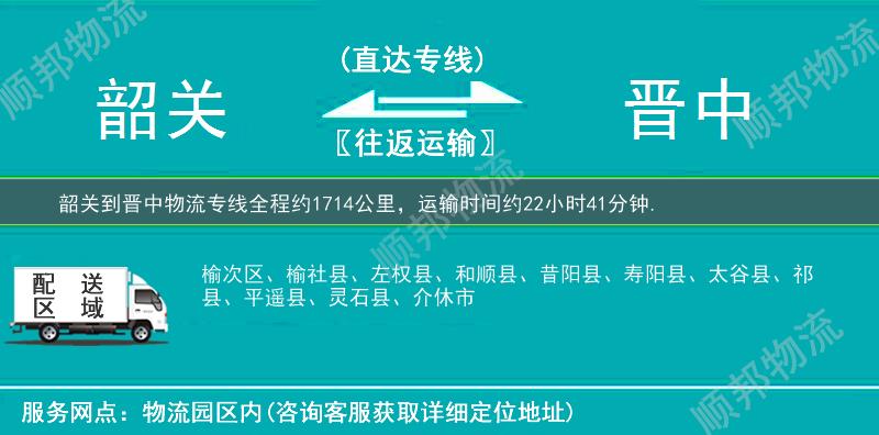 欢迎来电咨询韶关到晋中物流专线相关信息,天天发货,全程3-7天可将您的货物送至晋中全市:昔阳县、榆次区、祁县、灵石县、左权县、太谷县、平遥县、和顺县、寿阳县、榆社县、介休市、。