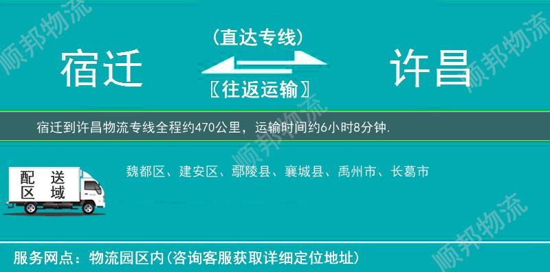 宿迁到许昌物流专线全程约470公里,专线运输耗时约6小时8分钟, 宿迁到许昌物流专线是顺邦物流重点打造物流线路之一,找宿迁到许昌物流公司就选顺邦物流,我们将竭诚为您提供专业宿迁到许昌物流货运服务。