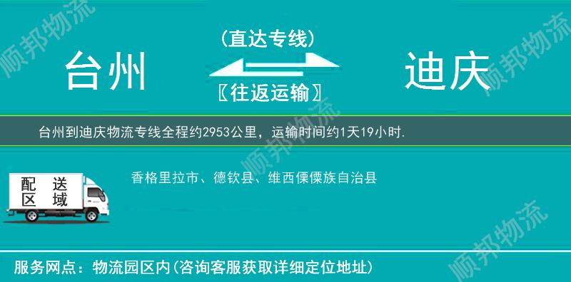 ★ 声明:本文"台州到迪庆物流专线_诚信经营「全境配送」"由顺邦物流原创发布,转载请保留本文链接:http://www.lyhawl.com/taizhou/diqing-wuliu.html