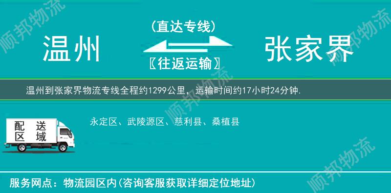 同时,顺邦物流为了方便广大客户从温州到张家界的不同运输时效和物流成本要求,顺邦物流特推出温州到张家界物流公司相关业务,以此来降低从温州到张家界运输的物流成本,提高温州到张家界的物流效率,以便为新老客户提供更加完善的从温州到张家界的一站式优质物流服务!