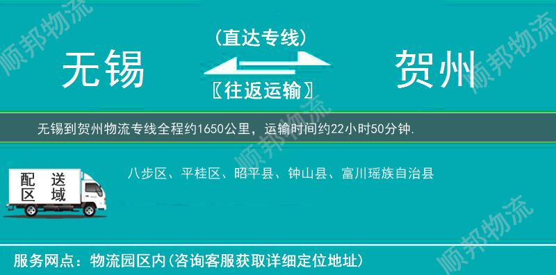 ★ 声明:本文"无锡到贺州物流专线_多年经验「几天到达」"由顺邦物流原创发布,转载请保留本文链接:http://www.lyhawl.com/wuxi/hezhou-wuliu.html