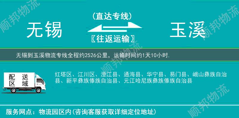 ★ 声明:本文"无锡到玉溪物流专线_收费介绍「市县派送」"由顺邦物流原创发布,转载请保留本文链接:http://www.lyhawl.com/wuxi/yuxi-wuliu.html