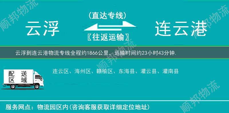云浮到连云港物流专线可以提供门到门服务,在云浮、云城区、新兴县、郁南县、罗定市、云安区、等地都设有门店,提供上门提货、送货上门服务。
