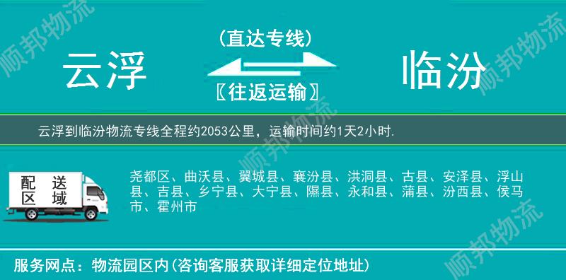 ★ 本站所列云浮到临汾物流专线费用与时效仅供参考,如需详细了解收费标准请电话咨询。