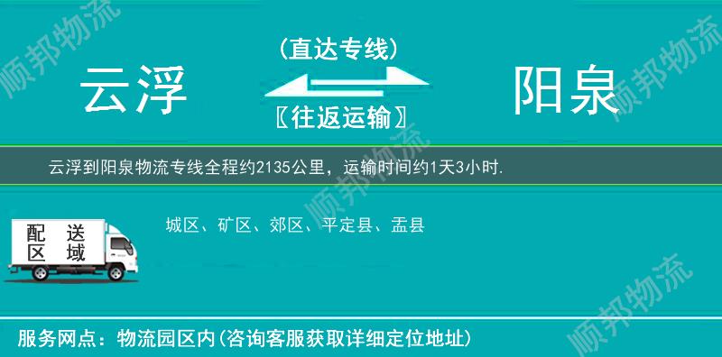 ★ 声明:本文"云浮到阳泉物流专线_无需中转「放心物流」"由顺邦物流原创发布,转载请保留本文链接:http://www.lyhawl.com/yunfu/yangquan-wuliu.html
